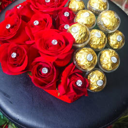 Price: $120.00 Louis Vuitton Gift box with flowers and ferrero rocher chocolates Product Tags: Same-day Delivery
